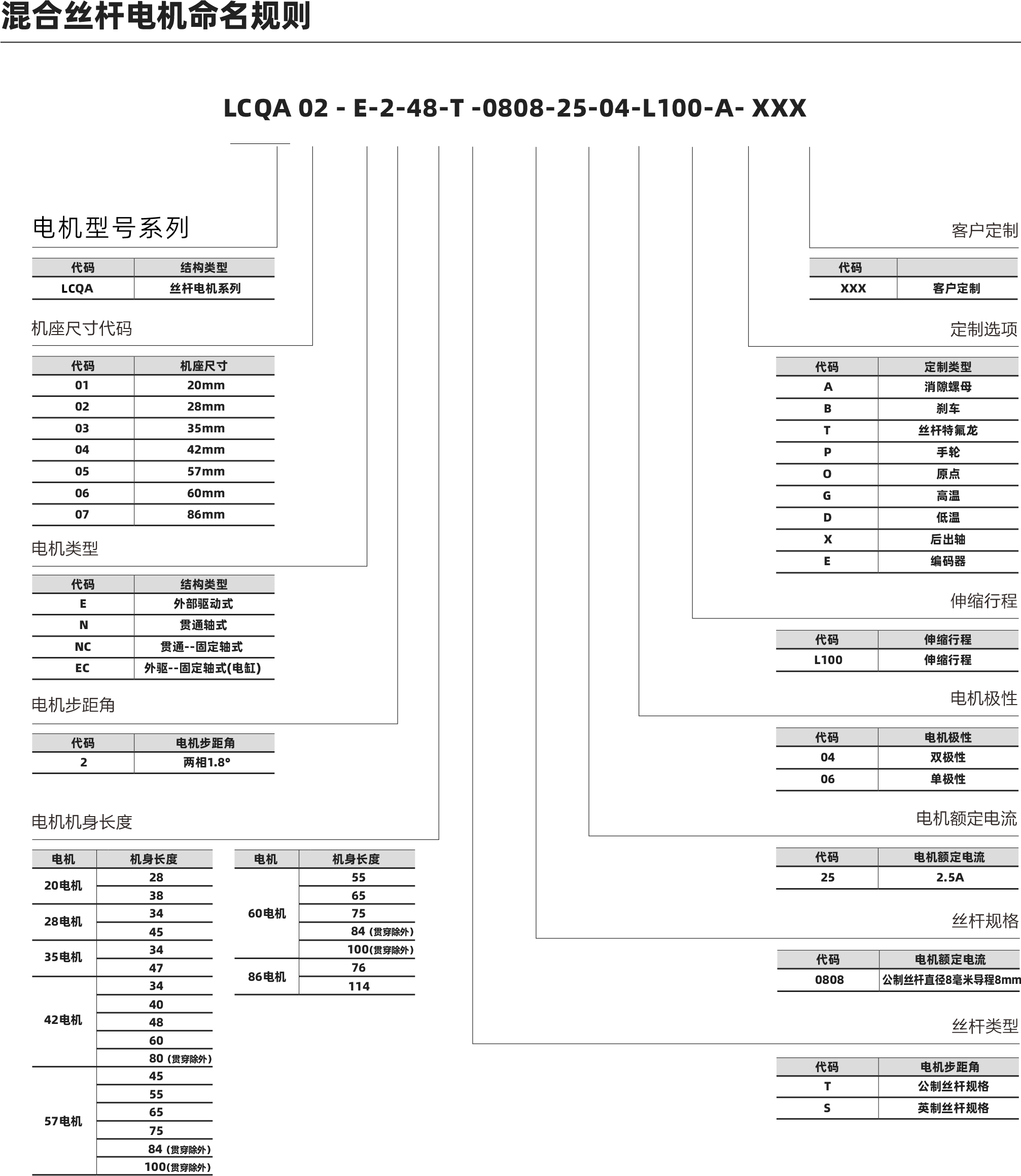 立成梯形/貫通絲桿電機(jī)命名型號參數(shù)表