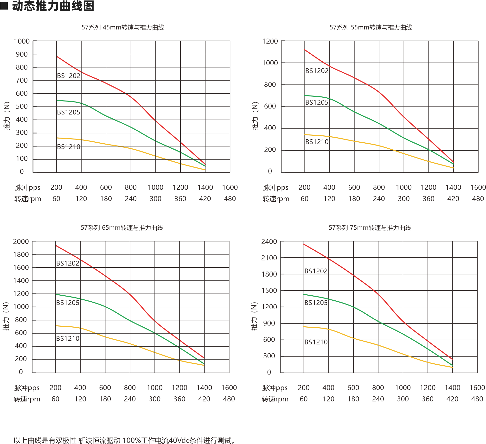 立成57系列滾珠絲桿電機(jī) 相數(shù) 步距角精度 IP等級(jí) 認(rèn)證 絕綠等級(jí) 運(yùn)行環(huán)境溫度 0 土5% 40 ROHS CE ISO9001 B ( 130C ) -20C- +50C 外形圖 螺母外形圖 1迪0+1 g-185+ 0200 4.14 6206 b 20 6200 EW57系列滾珠絲桿電機(jī) 20 8r 1608 EO 6610 電機(jī)參數(shù) 電機(jī)黃型 57 機(jī)身L[mm 保持力矩(N.m] 45mm 07 55mm 09 65mm 1.5 75mm 1.8 22 84mm賈穿除外) 100mm賈身路外) 25 額定電[A) 34 30 40 G 40 50 電阻[D] 0750 0920 0780 0.950 0970 070 定電感(mH) 23mH 45mH 33mH 45mH 54mH35m4 額定電壓IW 225V 275V 312V 38V 踴們稍者恐觀08V 35V 絲桿參數(shù) 絲桿代碼 1202 1204 1205 1210 1605 1610 1620 蘭桿直徑imm 2 2 12 12 16 16 16 導(dǎo)程mm 2 0 9 10 5 10 20 鑄達(dá)場(chǎng)館珠出桿最大軸向間原 002 002 002 002 002 002 002 精度等級(jí) C7 C7 C 0 C 注:1,外形圖所展示為標(biāo)準(zhǔn) 母,可根據(jù)您的要求足制耀母 2,為了滿足不同客戶的需求,我們有KSS,THK,TBI等品牌絲桿可選