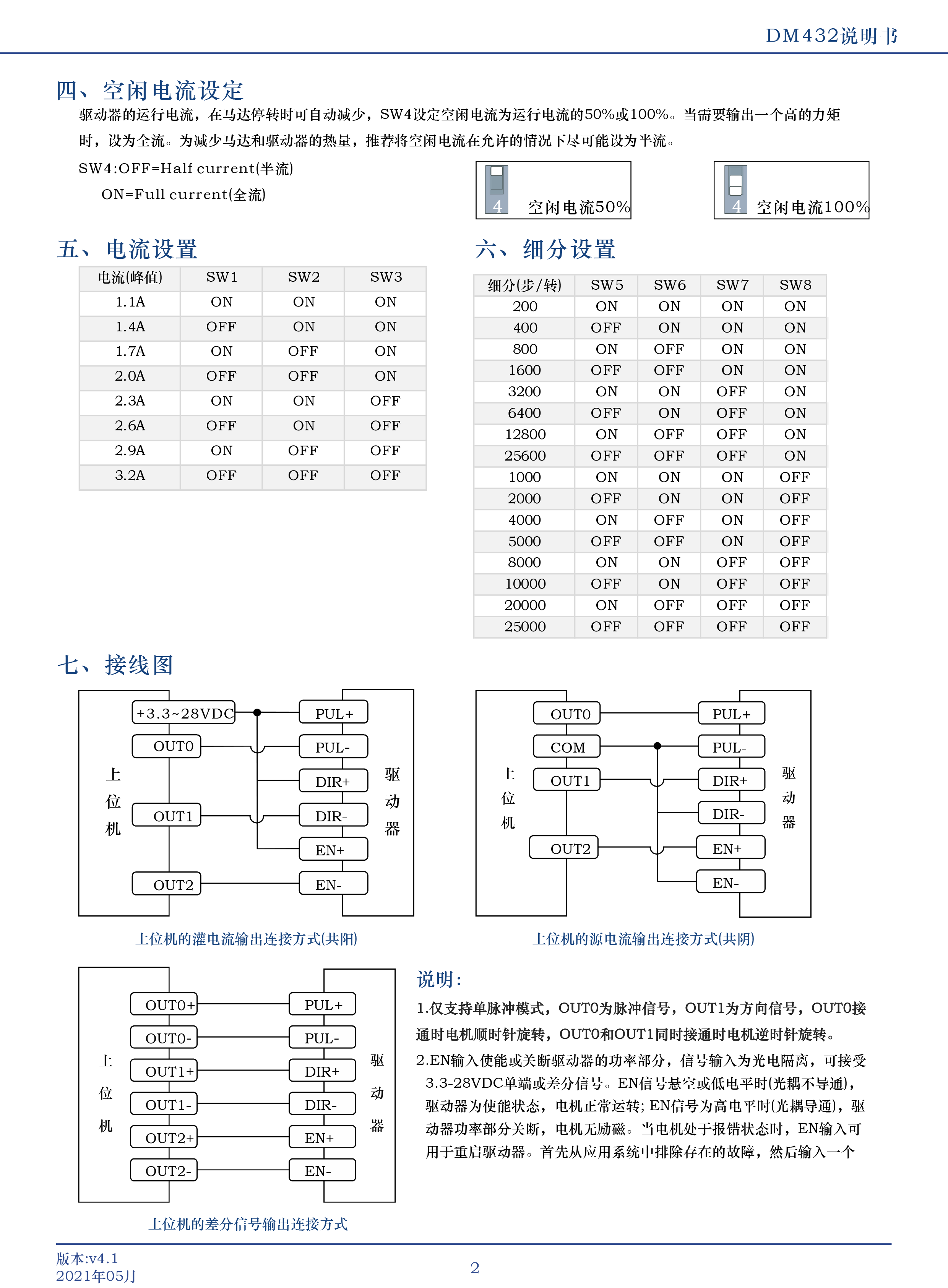 DM432是立成公司潛心研制的基于新一代基于32位DSP技術(shù)的高性能兩相數(shù)字式步進(jìn)驅(qū)動(dòng)器,驅(qū)動(dòng)電壓DC8V-36V適配電流 32A以下,外徑42以下各種號(hào)兩相混合式步進(jìn)電機(jī)該驅(qū)動(dòng)器采樣類似伺服的控制原理,獨(dú)特的電路設(shè)計(jì),優(yōu)越的軟件算法處理,使電機(jī)即使在低細(xì)分下也能運(yùn)行平穩(wěn),幾乎沒有振動(dòng)和噪音,平滑、精確地電流控制技術(shù)大大減少了電機(jī)發(fā)熱,外置16檔等角度恒力矩細(xì)分,最高128細(xì)分,光耦隔離差分信號(hào)輸入,抗干擾能力強(qiáng),具有過壓、欠壓、過流保護(hù)等出錯(cuò)保護(hù)功能。在點(diǎn)膠機(jī)、激光雕刻等中、低速應(yīng)用領(lǐng)域,其平穩(wěn)性、振動(dòng)、噪聲性能優(yōu)勢明顯,可大大提高設(shè)備性能。